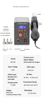 Màn hình kỹ thuật số điều chỉnh nhiệt độ súng hơi nóng
