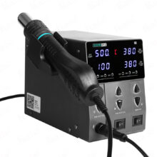 Chính hãng mẫu máy khò hàn hiện đại công suất 760W. Sử dụng tay hàn T12 nhiệt cao, ổn định, tuổi thọ dài . Tay khò kèm 2 vòi khí thẳng , 2 vòi khí xoáy độ rung thấp